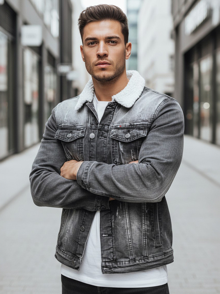 Pánská zateplená džínová bunda s ovčí kůží TX4230z černá