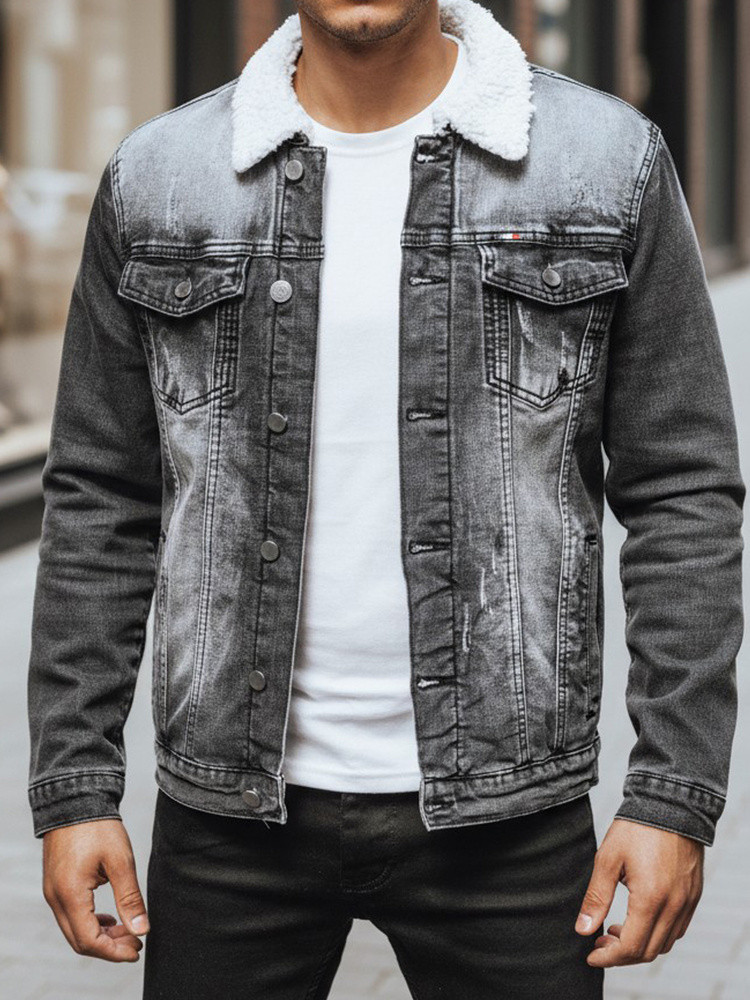Pánská zateplená džínová bunda s ovčí kůží černá FashionStreet TX4230z
