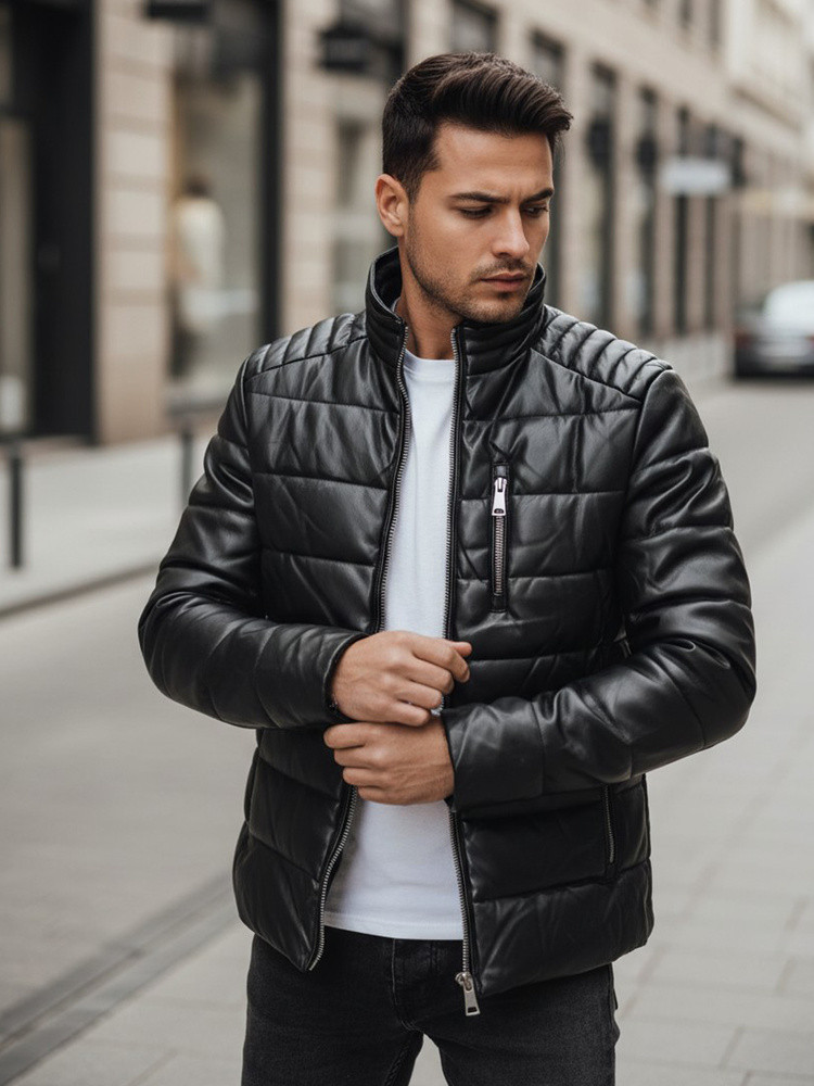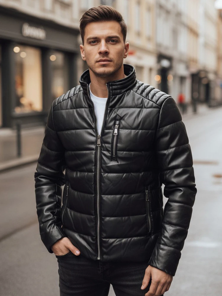 Pánská prošívaná kožená zateplená bunda TX5115 černá