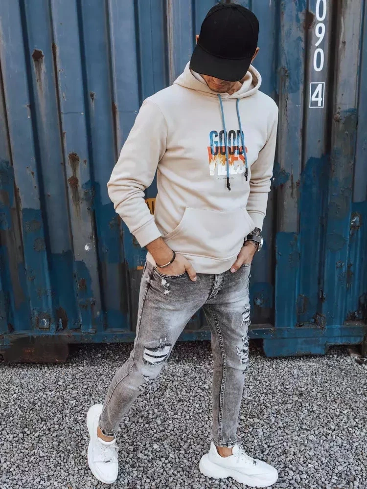 Pánská zateplená mikina s kapucí béžová FashionStreet BX5378