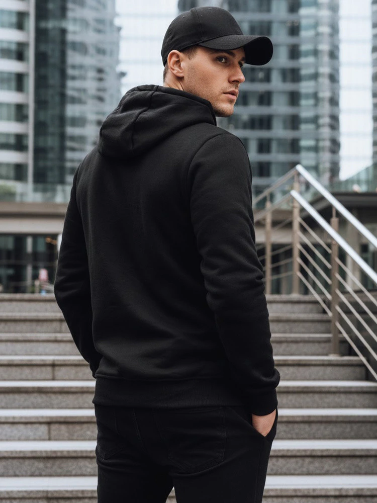 Bluza męska z nadrukiem ICON BLACK WHITE to połączenie klasycznego kroju z nowoczesnym akcentem. Wykonana z miękkiej dzianiny bawełnianej z dodatkiem poliestru, zapewnia komfort noszenia przez cały dzień. Wnętrze bluzy wykończono meszkiem polarowym, który gwarantuje ciepło i miękkość w dotyku. Minimalistyczny nadruk na przodzie dodaje jej modnego, miejskiego charakteru.