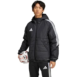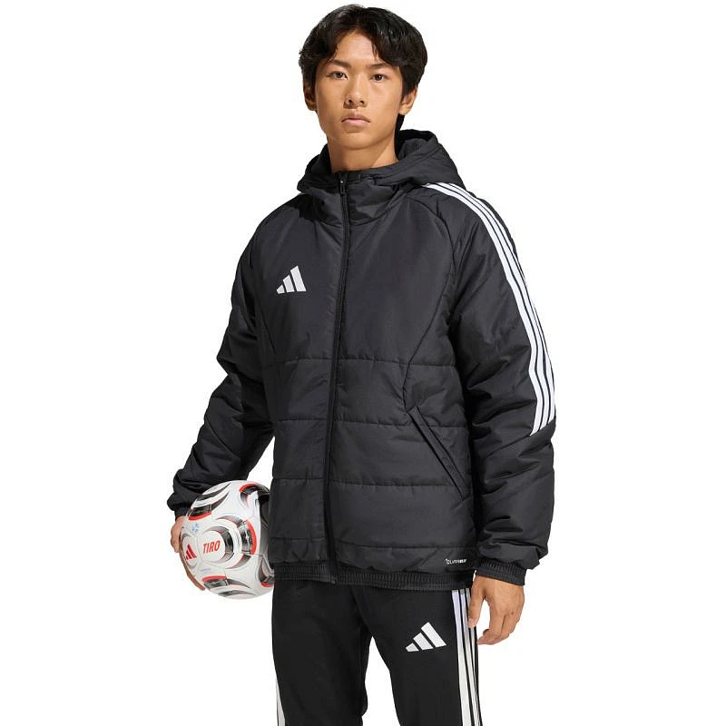 Pánská zimní bunda adidas Tiro 26 černá JZ4109 Pánská fotbalová bunda adidas Tiro je ideální i pro každodenní nošení. Syntetické polstrování pomáhá udržovat optimální tělesnou teplotu. Tradiční střih. Zip po celé délce. Boční kapsy na zip. Neodnímatelná, nenastavitelná kapuce posazená na vysokém stojáčku. Pruhované rukávy. Subtilní logo na přední straně. Technické specifikace:- Ripstop tkanina: 100% recyklovaný polyester- Standardní střih- Zip po celé délce na přední straně- Vodoodpudivé vlastnosti- Zateplení Climawarm.