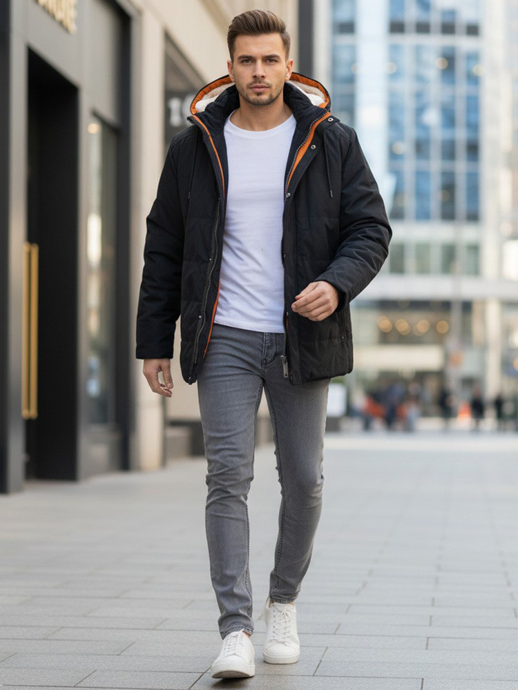 Zimowa kurtka męska wyróżnia się solidną, pikowaną konstrukcją, która pomaga utrzymać stabilną temperaturę ciała w chłodniejszych miesiącach. Wykonana z odpornego poliestru, zapewnia wytrzymałość na codzienne użytkowanie oraz zmienne warunki pogodowe. Wnętrze wykończono gładką podszewką, a regulowany kaptur i dół kurtki zwiększają ochronę przed chłodem. Model łączy klasyczny krój z funkcjonalnymi elementami, tworząc praktyczne okrycie na zimę.