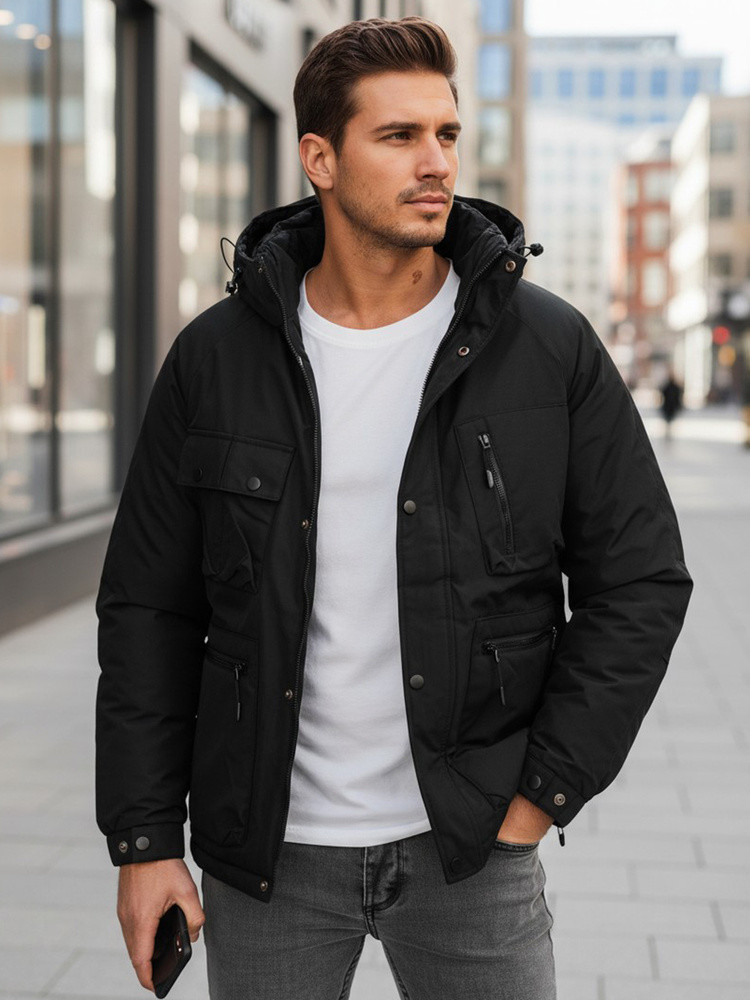 Pánská zimní bunda s kapucí černá model 21994704 - Dstreet