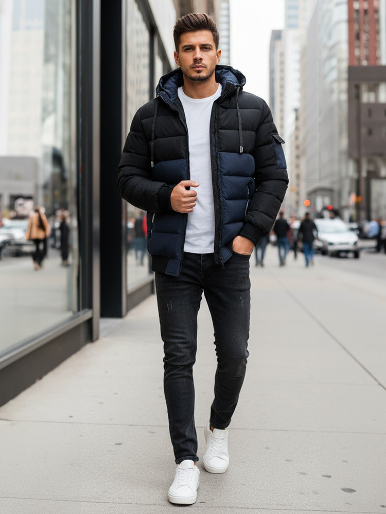 Pánská zimní bunda s kapucí tmavě modrá a černá FashionStreet TX5098