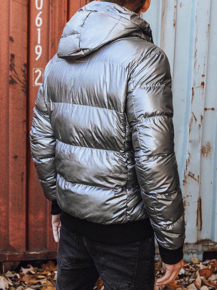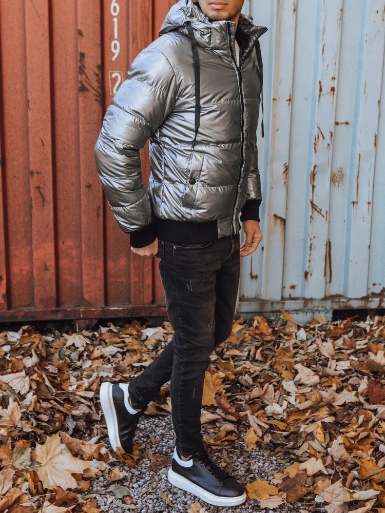 Pánská zimní bunda s kapucí ve stříbrné barvě FashionStreet TX3948