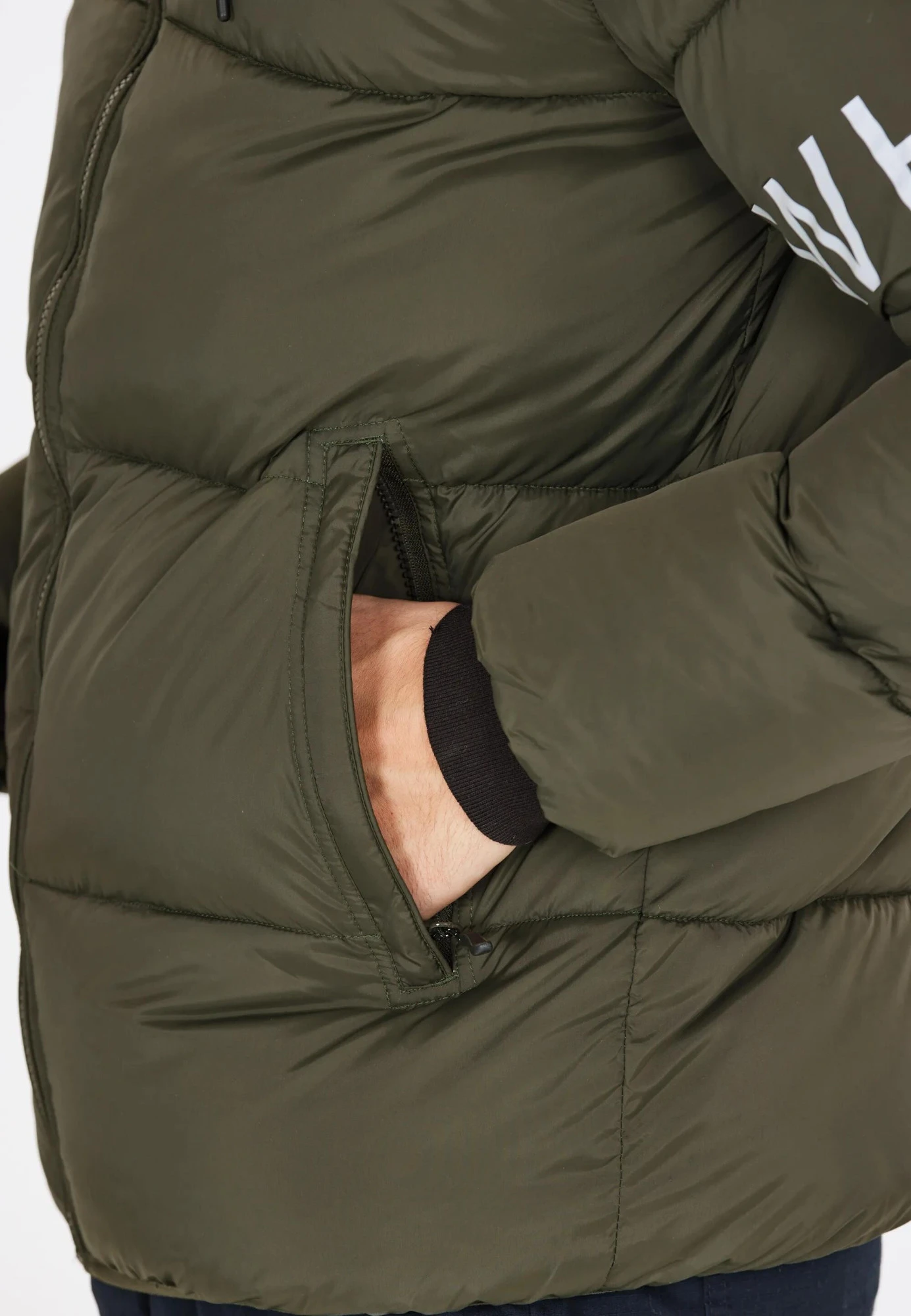 Bunda má klasický puffer střih s výrazným prošíváním, který nejen dobře izoluje, ale zároveň dodává moderní sportovní vzhled.