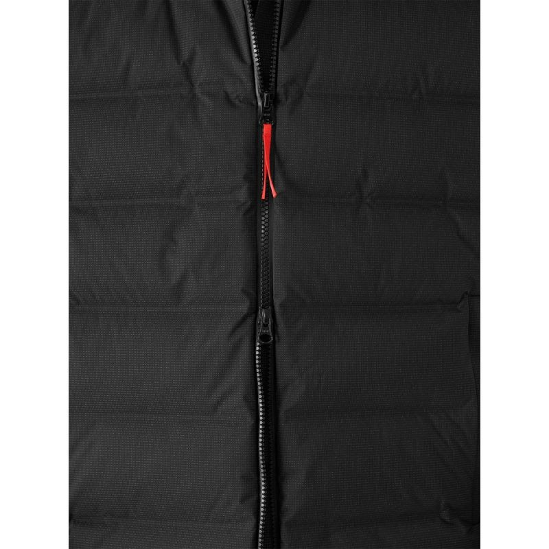 model byl zateplen přírodním kachním peřím 90/10, které je jedním z nejlepších tepelných izolantů při nízké vlhkosti. Použitá tkanina Pertex s membránou Pertex Shield 20000/20000 účinně chrání před vodou a větrem a zároveň umožňuje únik vlhkosti ven. Klasické horizontální prošívání zajišťuje rovnoměrné rozložení výplně a vhodnou stlačitelnost bundy.