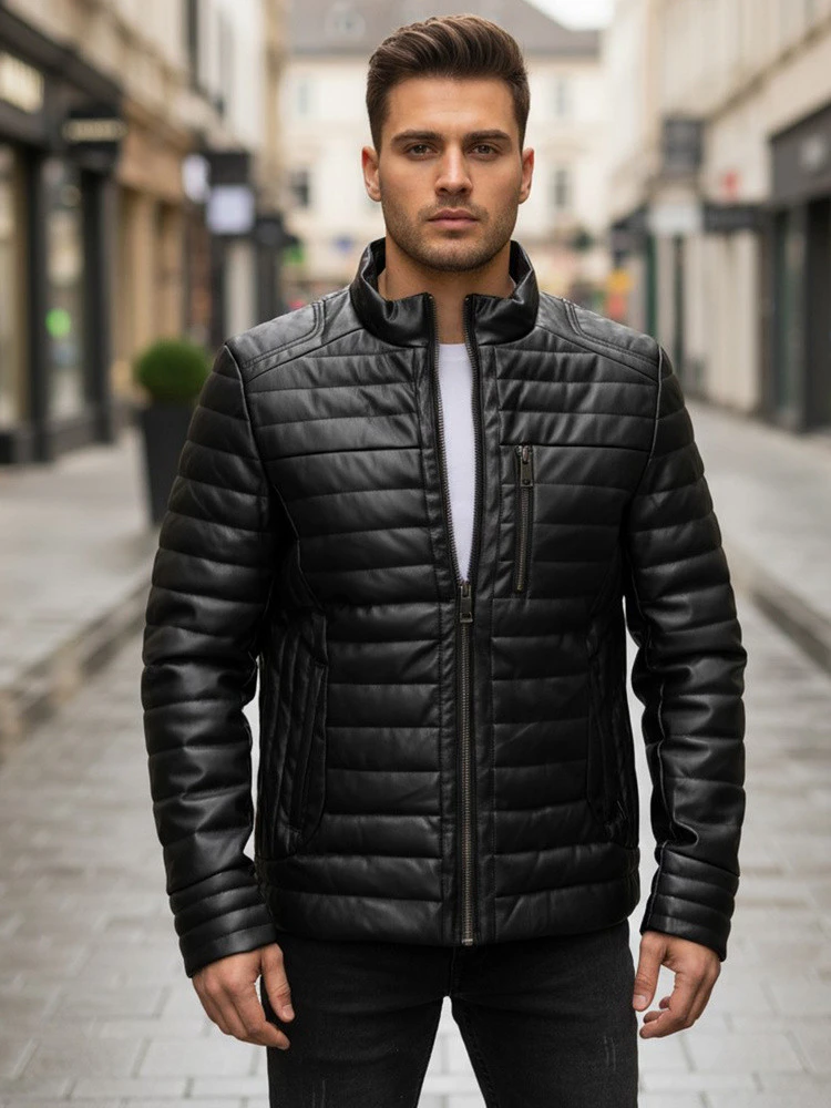 Pánská zimní prošívaná kožená bunda černá FashionStreet TX5113