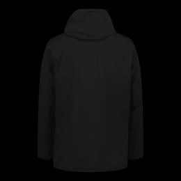 Zimowa męska kurtka z membraną Clima Protect i materiałem Sorona Aura Flock zapewnia komfort w trudnych warunkach, chroniąc przed wilgocią i chłodem. Stały kaptur chroni głowę przed zimnym wiatrem.