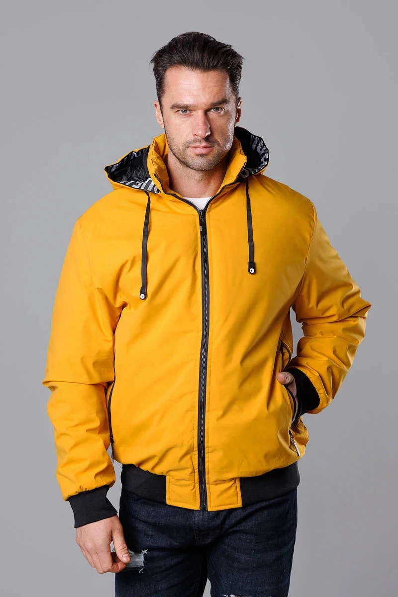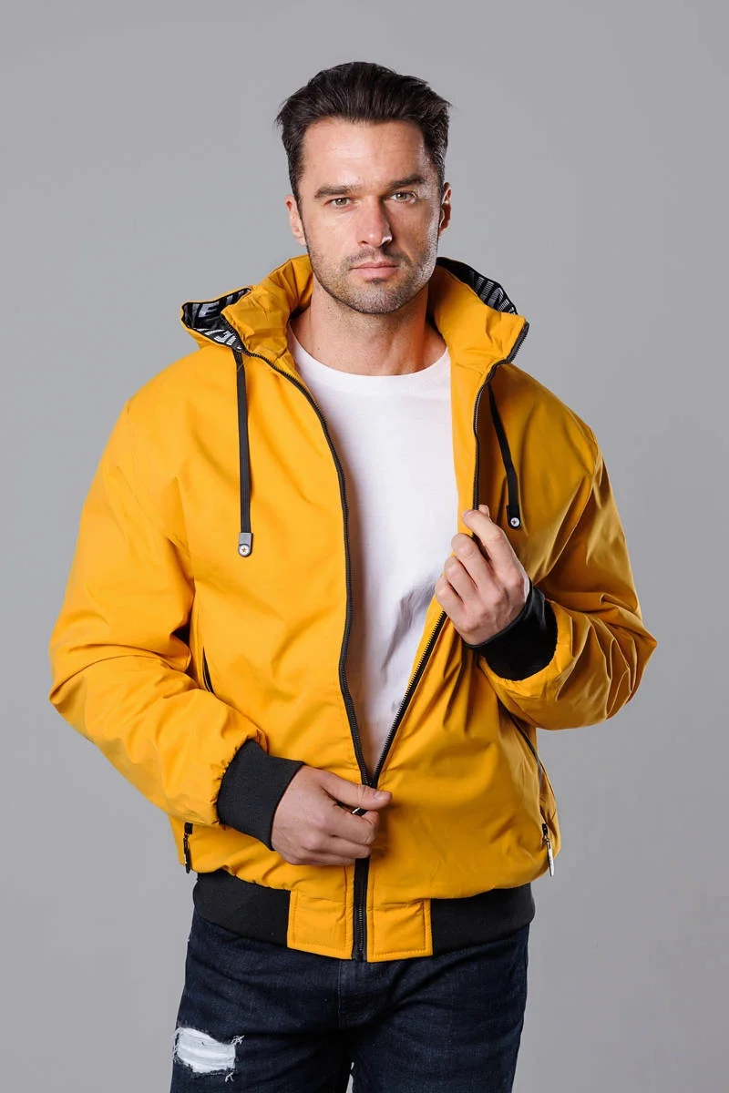 Pánská žlutá sportovní bunda s kapucí model 18311037 - J.STYLE