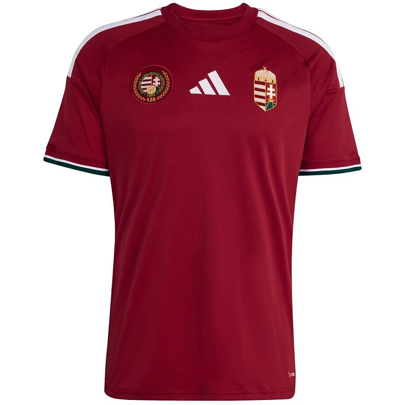 Pánský domácí dres adidas Hungary 26 Official bordó JZ6975 Pánský domácí dres adidas byl vytvořen u příležitosti 125. výročí maďarské federace. Krátké rukávy. Technologie Climacool zajišťuje optimální ventilaci, odvod potu a sucho i během intenzivních tréninků. Přizpůsobený střih. Žebrovaný výstřih. Jemné logo adidas, výrazné tři pruhy a znak národního týmu.