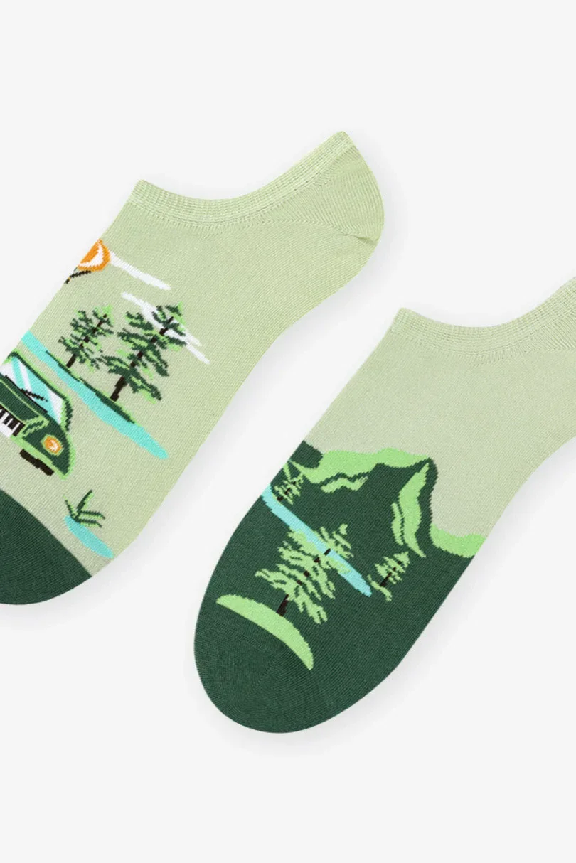 Pánské bavlněné ponožky, nízké, s barevným, asymetrickým vzorem.