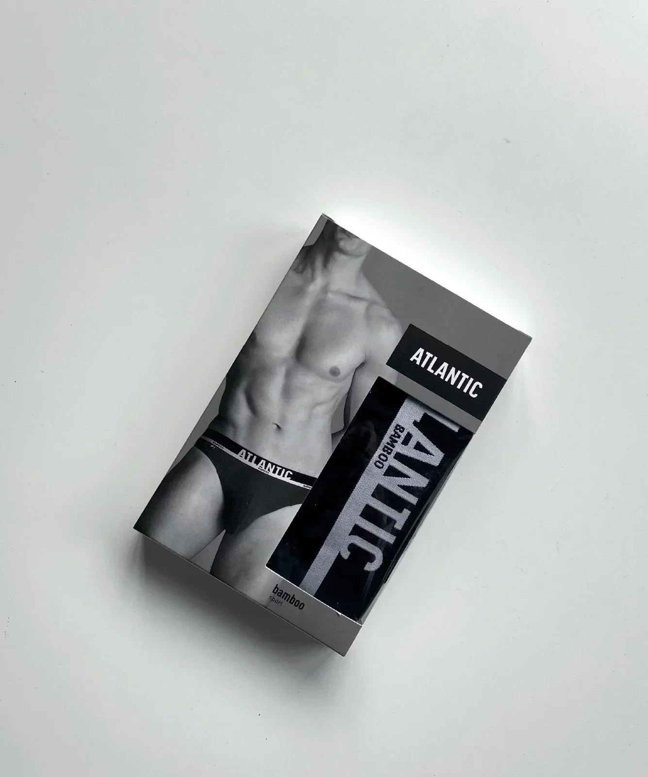Černé pánské slipy jsou v pase označeny širokou a měkkou gumou s nápisem ATLANTIC. Kalhotky mají sportovně estetický - vysoce střižené boky a nízký pas zakončený již zmíněnou vnější gumou . Příjemná na dotek, měkká guma nestlačuje tělo a nelepí se do něj, takže nezpůsobuje nepohodlí.Kalhotky jsou vyrobeny z úpletu, který je kombinací bambusu , jemného jako hedvábí, příjemné bavlny a pružného elastanu. Tato pletenina je šetrná k pokožce a má termoregulační vlastnosti - dodává pocit chladu v horkém počasí a hřeje v zimě. Je odolný při používání a zachovává si své vlastnosti po dlouhou dobu používání.