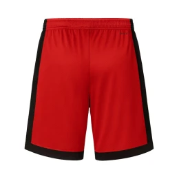 Spodenki utrzymane są w intensywnej czerwonej kolorystyce z czarnymi akcentami, co nadaje im energicznego i wyrazistego wyglądu.