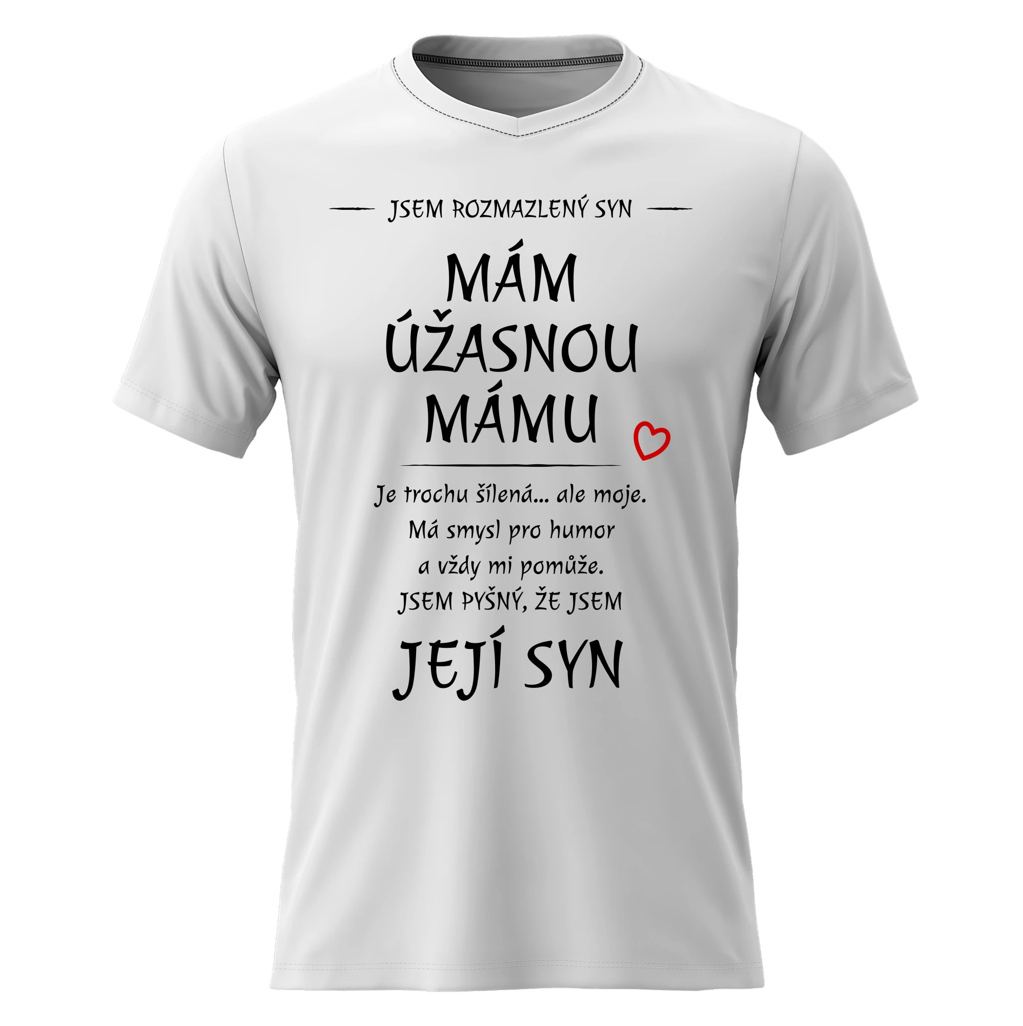 Pánské bavlněné tričko s potiskem - MÁM ÚŽASNOU MÁMU - bílé