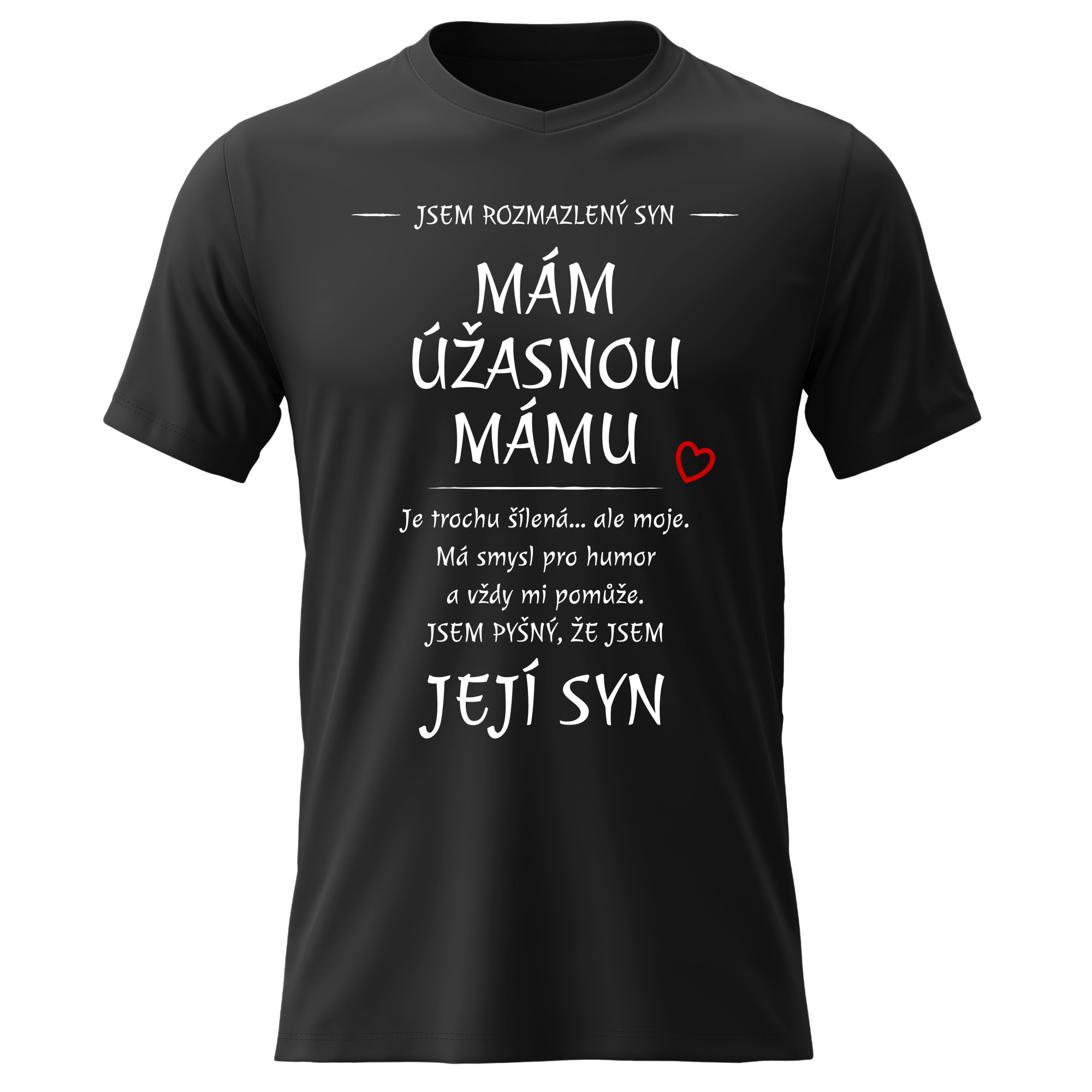 Pánské bavlněné tričko s potiskem - MÁM ÚŽASNOU MÁMU - černé