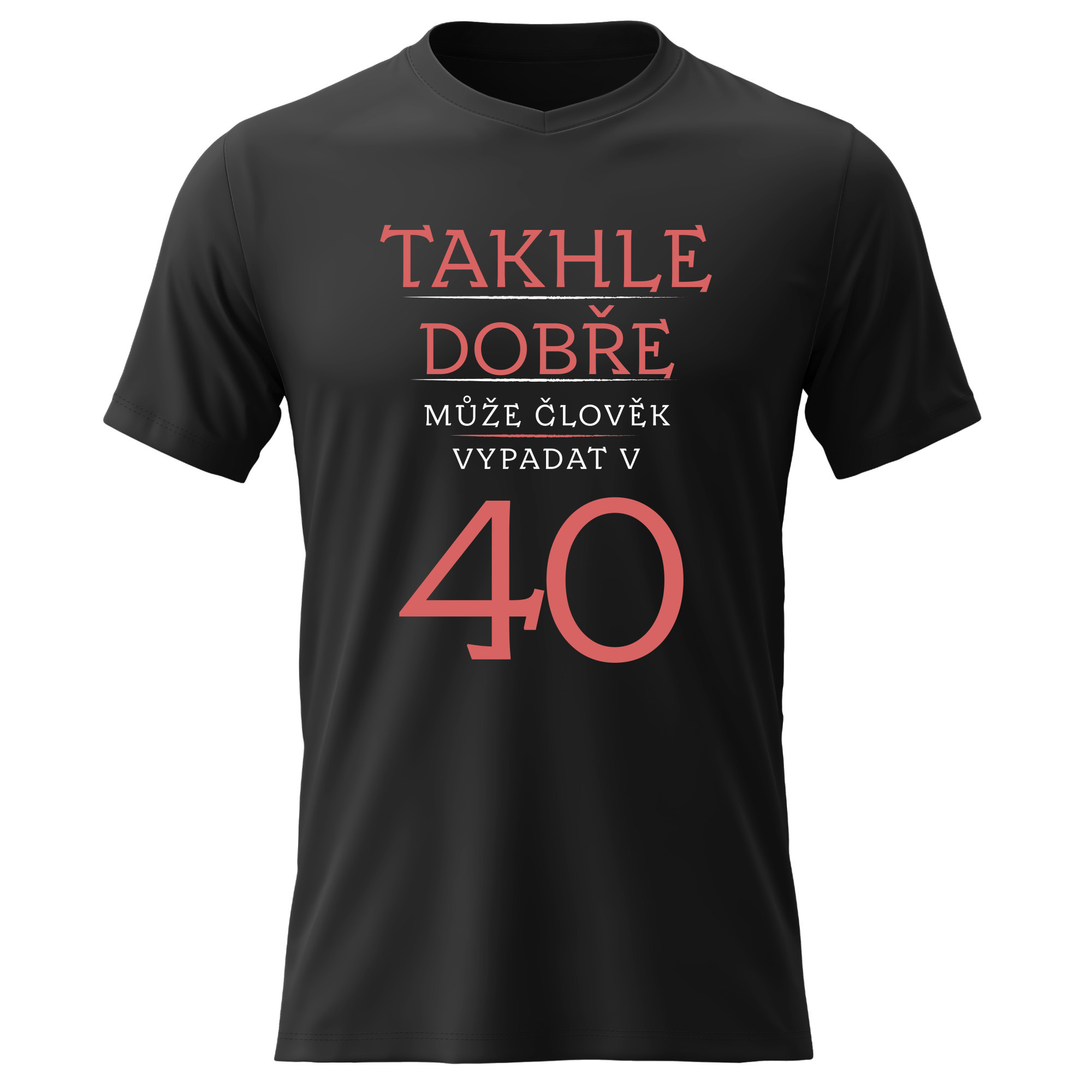 Pánské bavlněné tričko s potiskem - TAKHLE DOBŘE MŮŽE ČLOVĚK VYPADAT VE 40 (ČERVENÁ) - černé