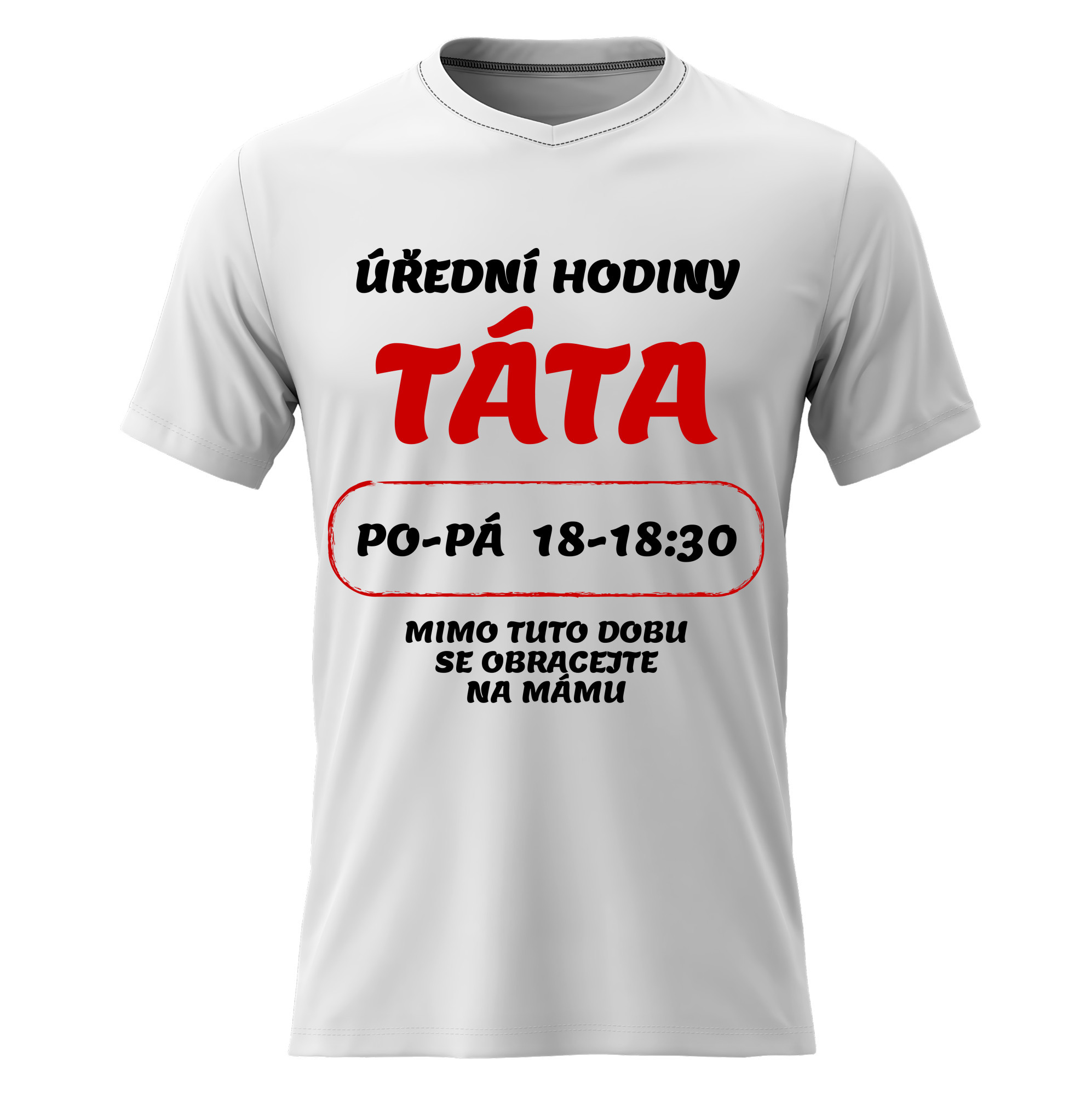 Pánské bavlněné tričko s potiskem - ÚŘEDNÍ HODINY TÁTA - bílé