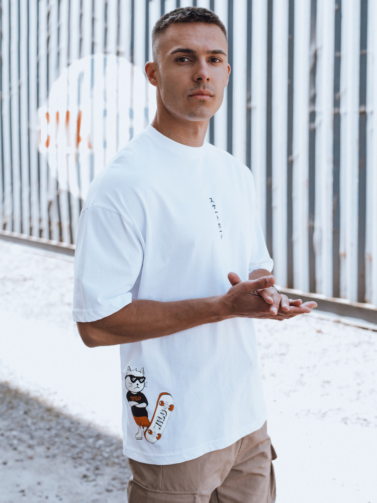 Pánské bílé tričko s potiskem FashionStreet RX5508