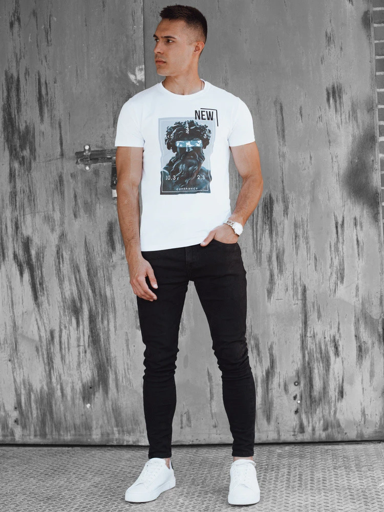 Pánské bílé tričko s potiskem FashionStreet RX5537