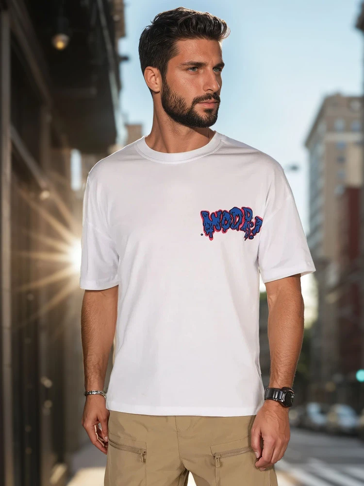 Ležérní pánské tričko pro každodenní nošení s městským nádechem má kontrastní potisk na přední straně a velkou grafiku graffiti na zádech, která zaujme streetwearovým vzhledem. Díky klasickému kulatému výstřihu je pohodlné a prodyšná tkanina je ideální pro jarní sezónu.
