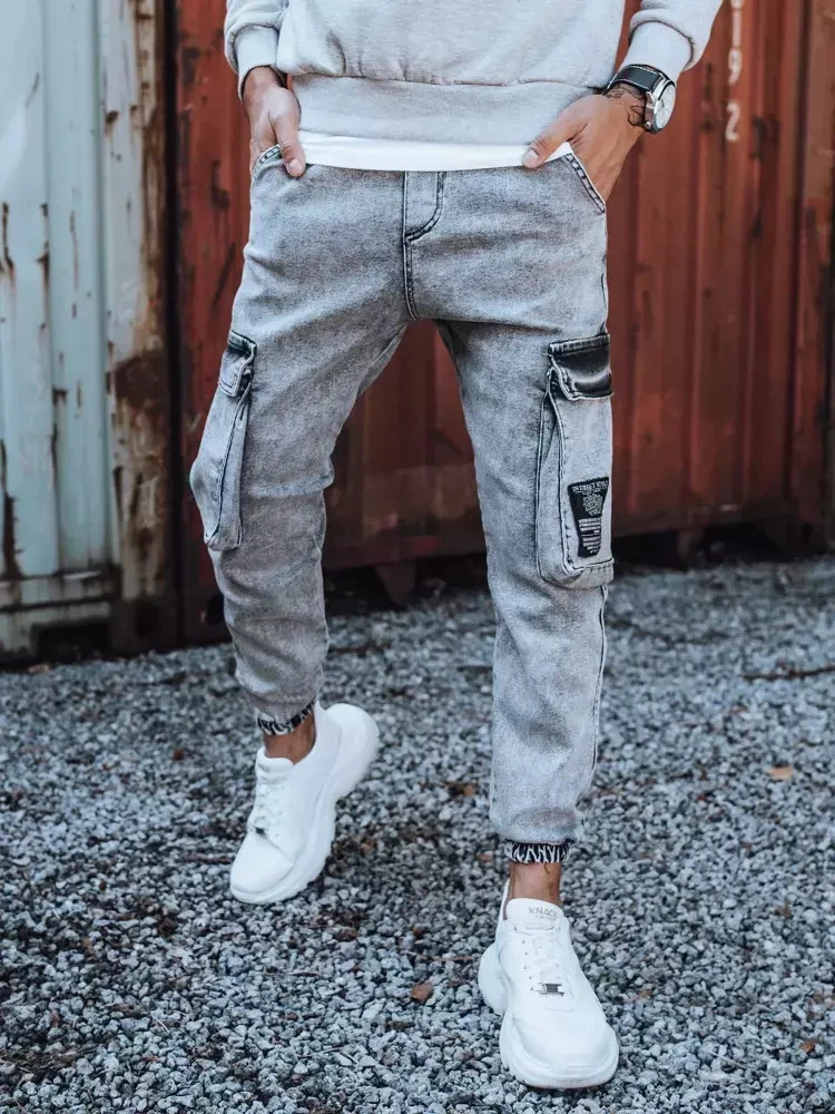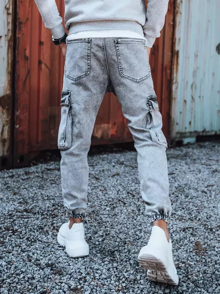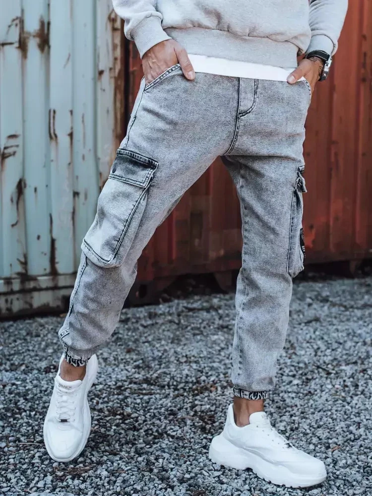 Pánské bojové džínové kalhoty světle šedé FashionStreet UX3309