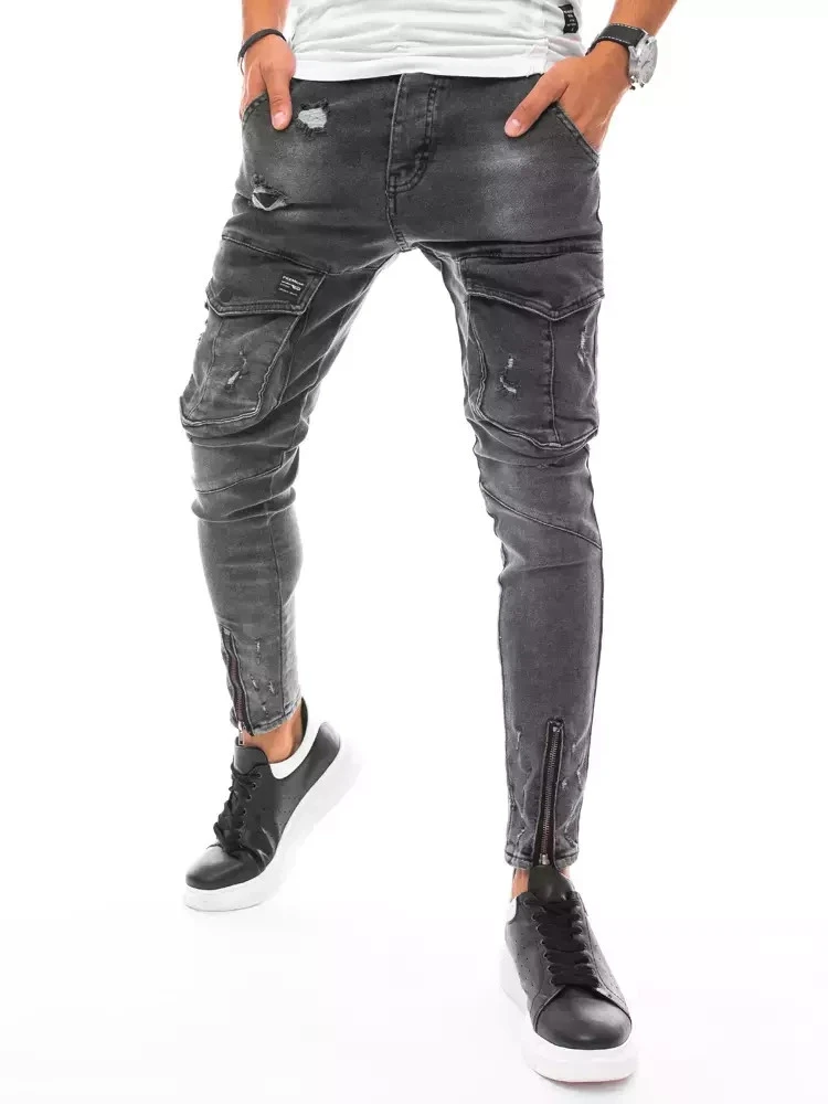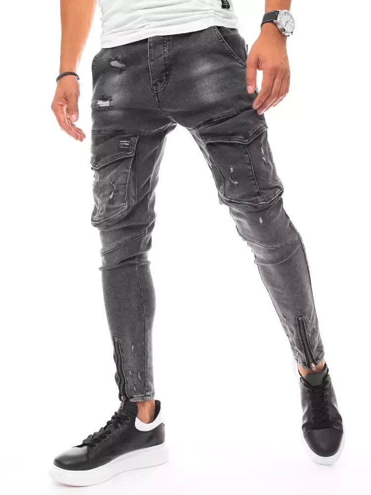 Pánské bojové džínové kalhoty tmavě šedé FashionStreet UX3288