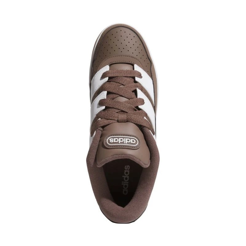 Pánská obuv adidas Break Start 2000 hnědá JR1466 Pánská obuv adidas pro každodenní nošení a trénink, inspirovaná koncem 90. let a začátkem roku 2000. Svršek standardního střihu ze syntetických materiálů. Perforační otvory. Klasické šněrování. Gumová podrážka ve tvaru platformy. Podešev pro optimální přilnavost k povrchu.
