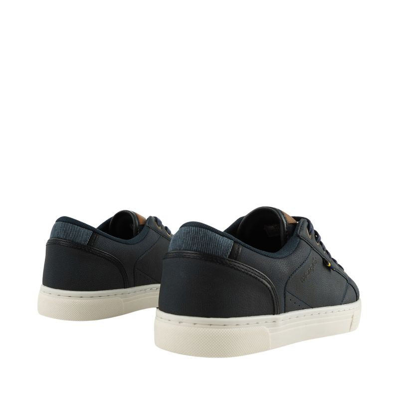 Buty męskie Wrangler Otis Low granatowe 20261002 29Y Buty męskie Wrangler sprawdzą się na co dzień. Cholewka wykonana ze skóry syntetycznej zyskała dodatkowe przeszycia. Klasyczne sznurowanie. Miękki, tekstylny język. Tekstylna wyściółka. Wkładka z technologią Memory Foam dopasowuje się do anatomicznego kształtu stopy, zapewniając maksymalną wygodę. Gumowa podeszwa.
