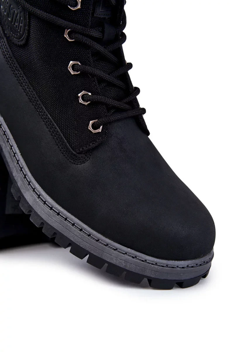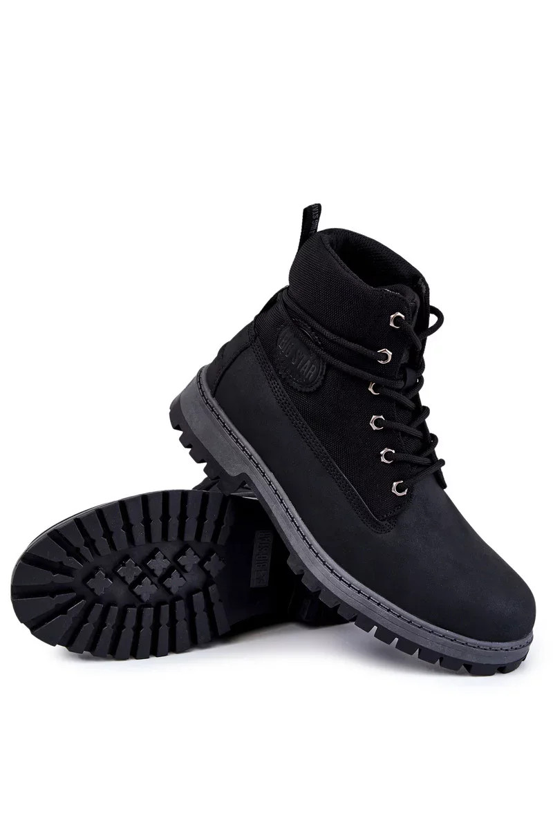 Pánské kozačky polské značky Big Star se svrškem z kombinace textilního materiálu a eko kůže. Klasický šněrovací model. Boty mají unikátní stélku MEMORY FOAM SYSTEM, která si pamatuje tvar chodidla, poskytuje perfektní padnutí a tlumí nárazy. Navíc je odolný proti deformaci a umožňuje odpařování vlhkosti a regulaci teploty. Zpevněná pata stabilizuje chodidlo. Při výběru velikosti použijte tabulku velikostí.