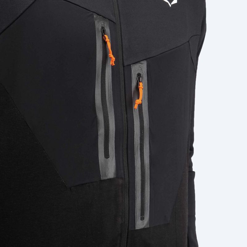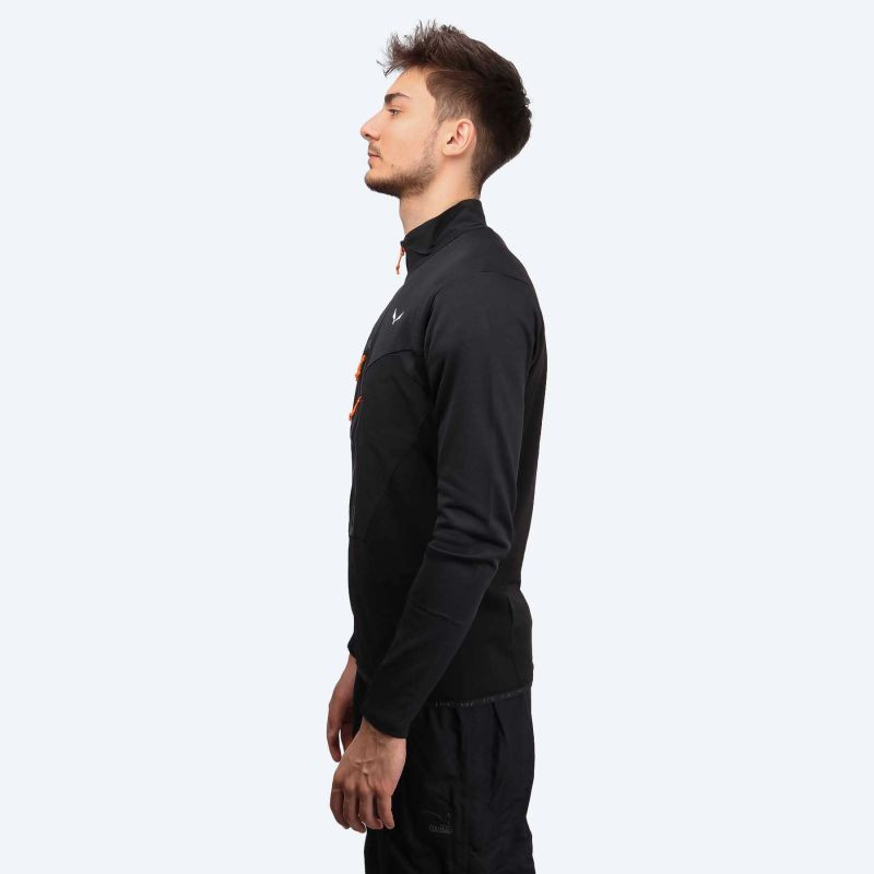 - Měkký vnitřní límec a elastické manžety s otvory na palce poskytují dodatečné krytí těla při nízkých teplotách. Mikina je také vybavena dvěma praktickými náprsními kapsami na zip.