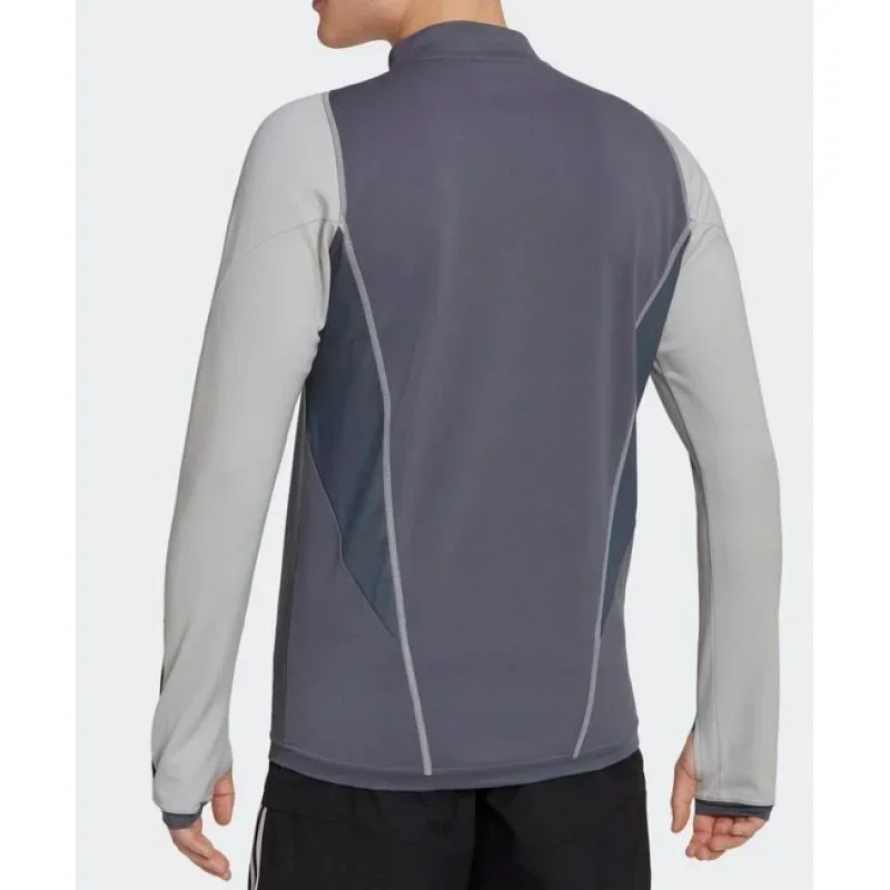 - Černé pruhy ve spodní části rukávů a decentní logo vynikají na šedém pozadí a podtrhují klasický fotbalový styl mikiny adidas.