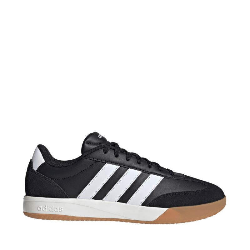 Buty męskie adidas VL Court FC czarne HQ0052 Męskie sneakersy w piłkarskim stylu. Klasyczny design z 3 paskami. Standardowe dopasowanie i wygodne sznurowanie. Grubszy język. Naszycia w kształcie “T” na froncie oraz naszycie na pięcie. Uniwersalne obuwie miejskie na co dzień.
