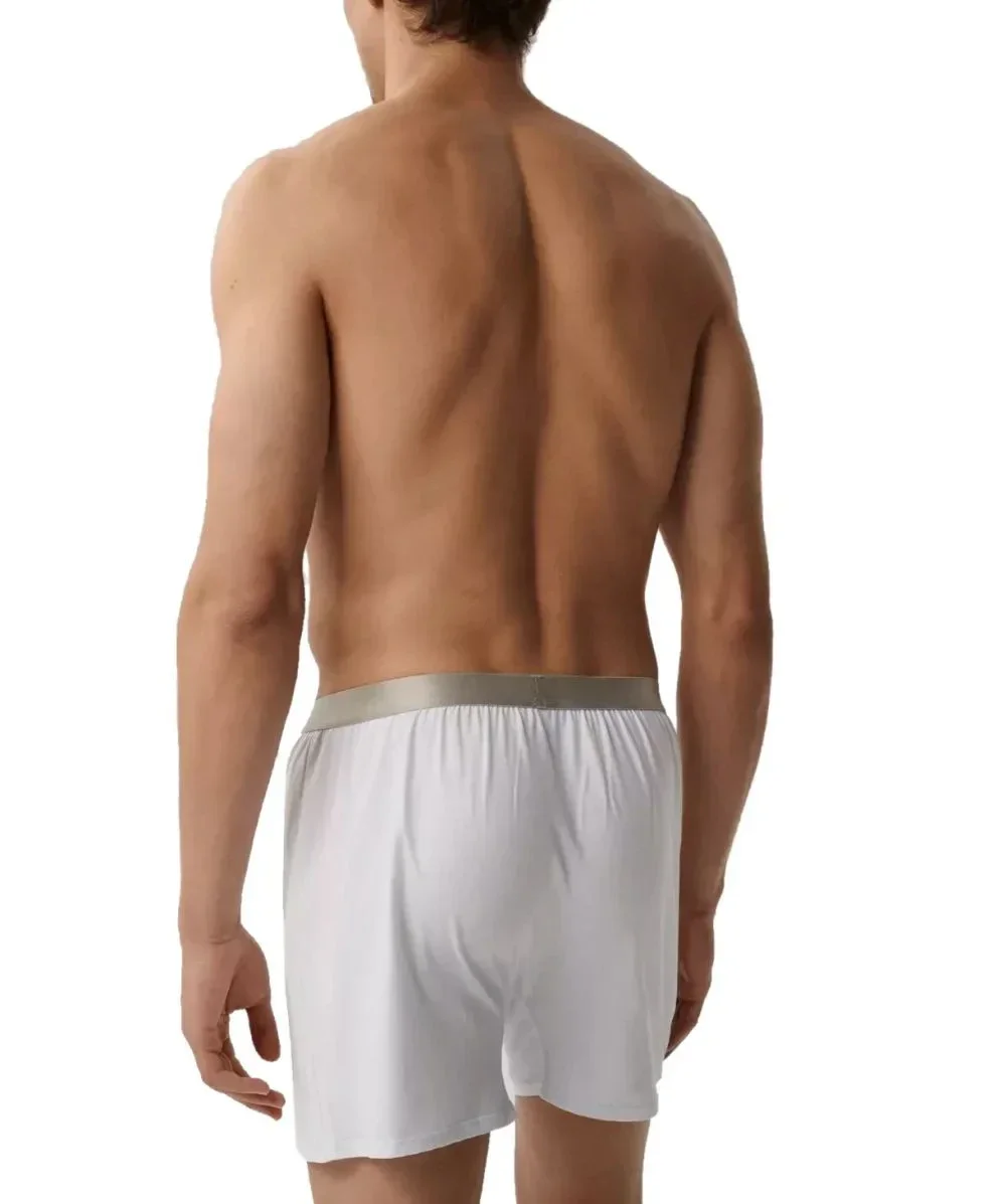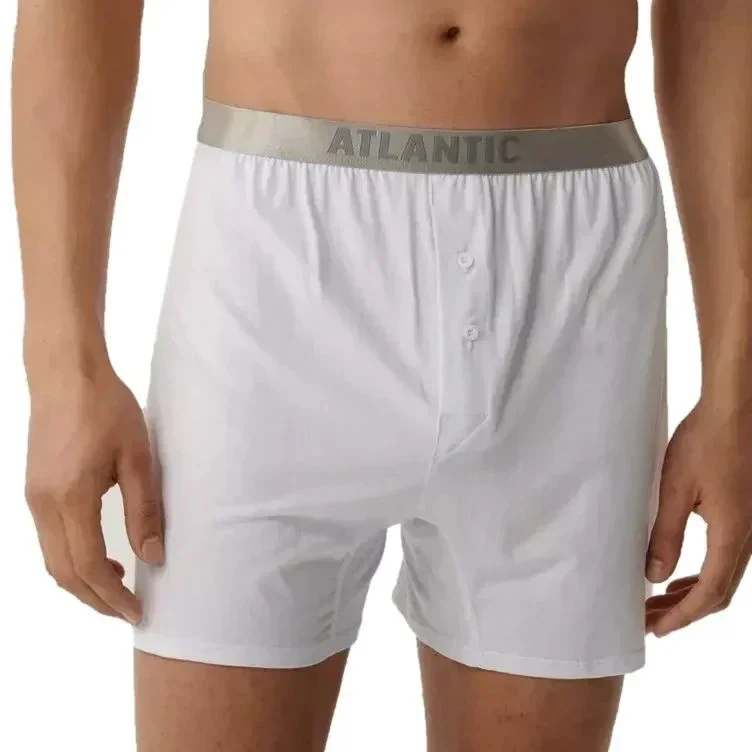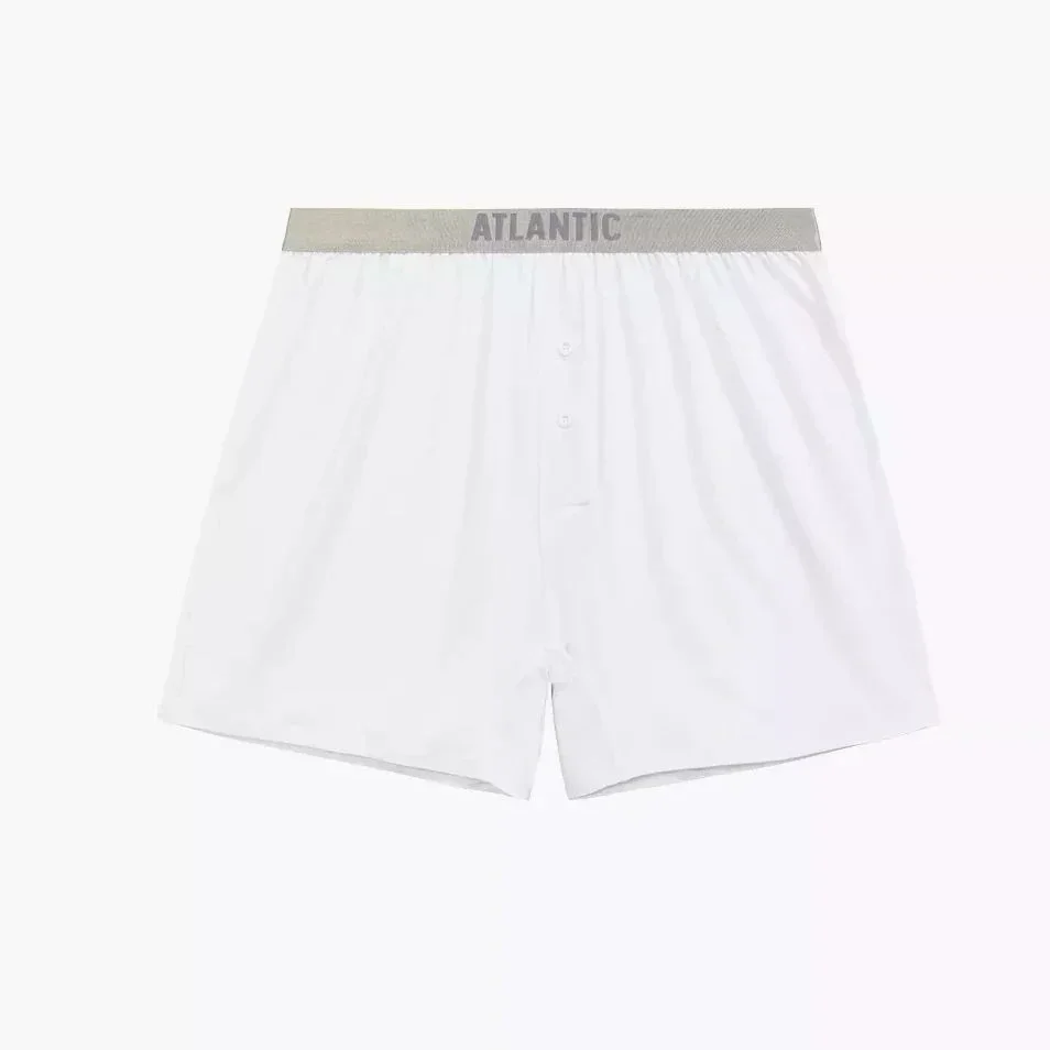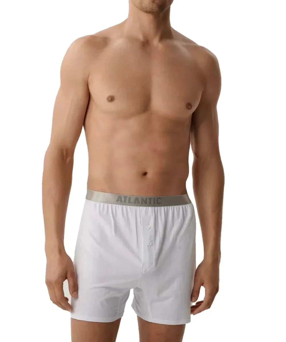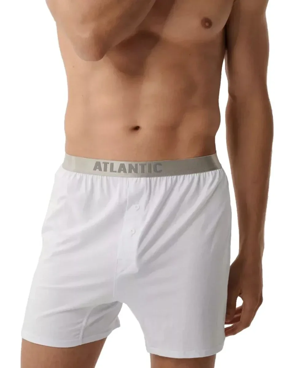 Pánské boxerky 005 white Atlantic - bílá barva - z vysoce kvalitní bavlny a modalu - komfortní a pohodlné - měkká guma s nápisem ATLANTIC - zapínání na knoflík