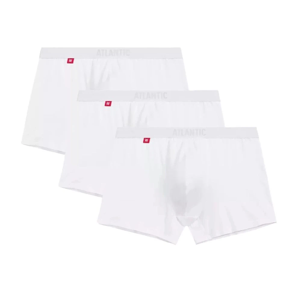 Pánské boxerky 011 white Atlantic - bílá barva - z vysoce jakostní bavlny - 3 ks v balení - komfortní guma s nášivkou ATLANTIC - lem nohaviček netlačí do stehen, proto jsou boxerky při nošení pohodlné a komfortní - výhodné balení 3 kusů