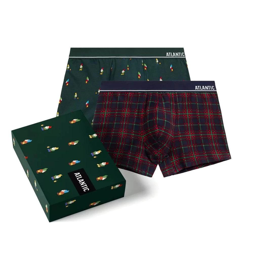 Pánské boxerky 2 pack 031 Atlantic - 2ks - z vysoce jakostní bavlny - se vzorem - ploché švy - zakončené gumou s nášivkou ATLANTIC, která zajišťuje vysoké pohodlí při nošení - výhodné balení dvou vzorů