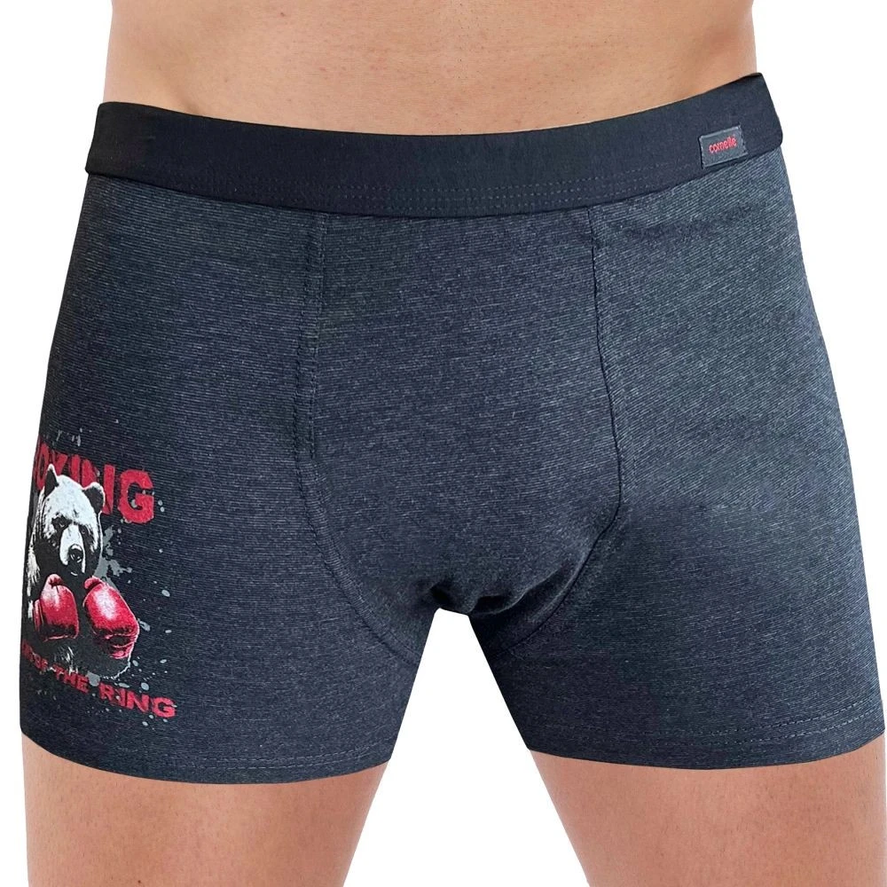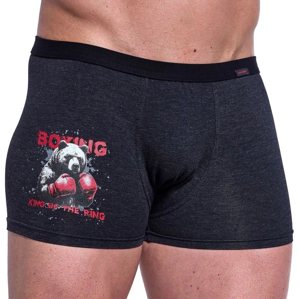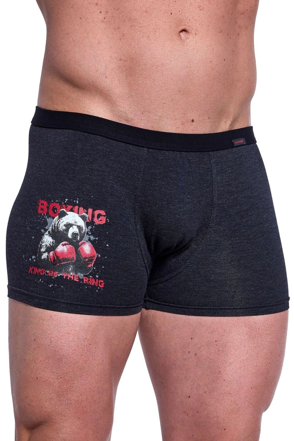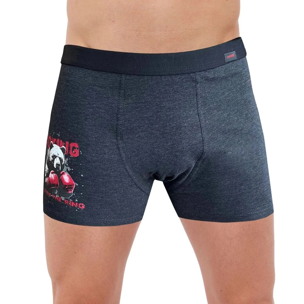 Pánské boxerky 280/242 Tattoo Ring CORNETTE - grafitová barva - z vysoce jakostní bavlny - ozdobené barevným zábavným potiskem - guma s plochým švem - obšitá bavlnou - lem nohaviček netlačí do stehen, proto jsou boxerky při nošení pohodlné a komfortní