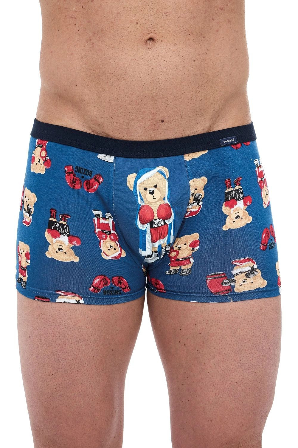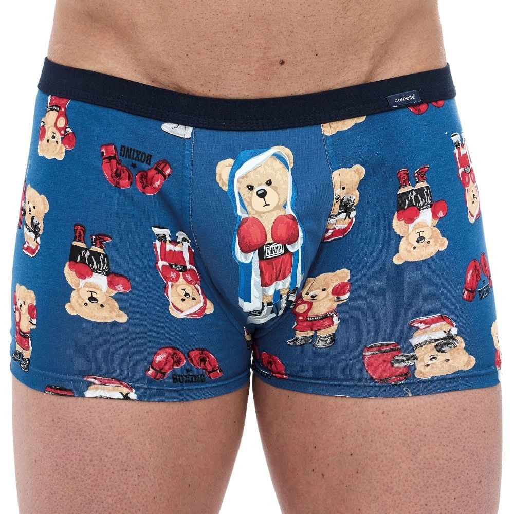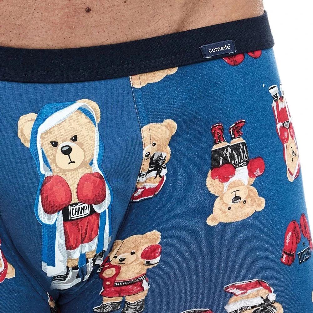 Pánské boxerky 280/250 Tattoo Boxer2 CORNETTE - tmavě modrá barva - z vysoce jakostní bavlny - ozdobené barevným zábavným potiskem - guma s plochým švem - obšitá bavlnou - lem nohaviček netlačí do stehen, proto jsou boxerky při nošení pohodlné a komfortní