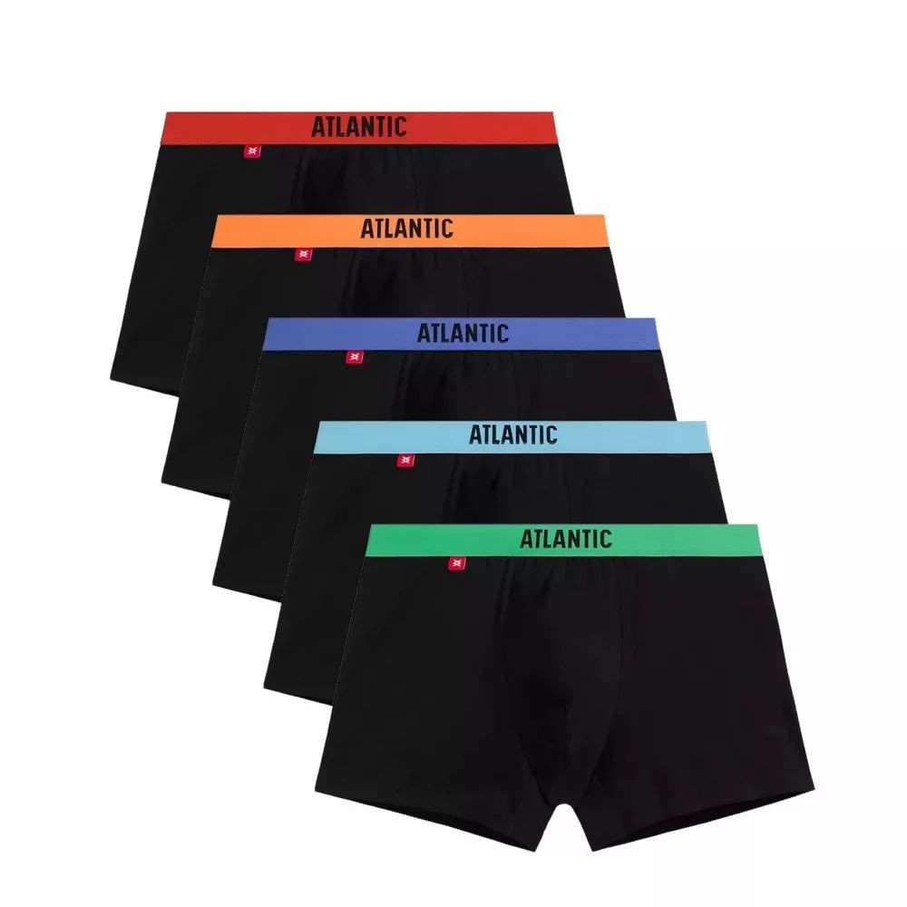 Pánské boxerky 5 pack 5SMH 004/4 Atlantic - černá barva - z vysoce jakostní bavlny - 5ks v balení - měkká guma v pase v pestrobarevném tunýlku s nápisem ATLANTIC - lem nohaviček netlačí do stehen - pohodlné a komfortní - výhodné balení pěti kusů