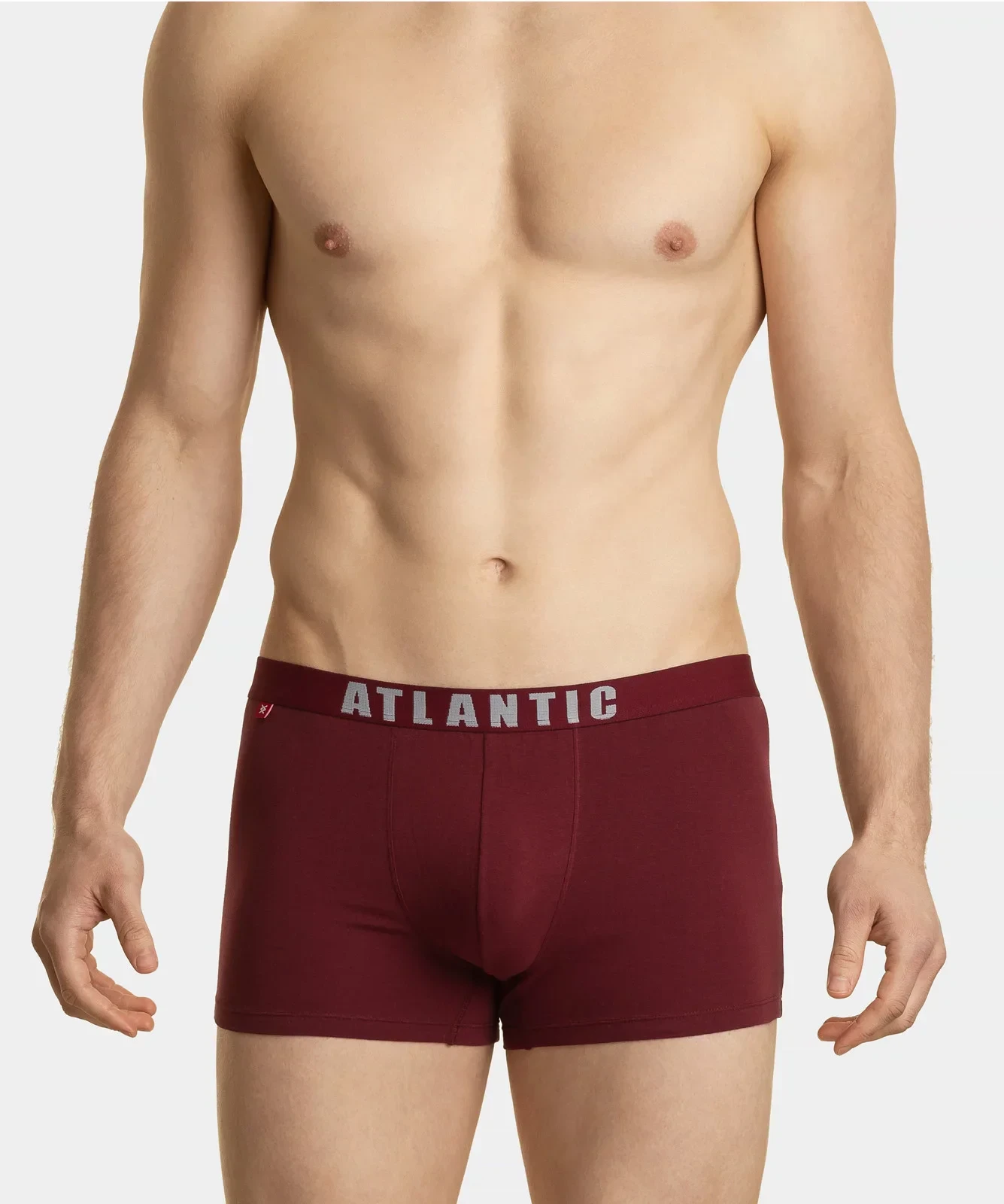 Bavlněné pánské boxerky s vnější gumou z mikrovlákna s nápisem Atlantic. Sportovní střih s krátkými nohavicemi, profilující střihy, poskytuje vysoký komfort a perfektně sedí na postavě. Vyrobeno z měkké bavlny s příměsí elastanu. Perfektní pro jakýkoli tvar těla.