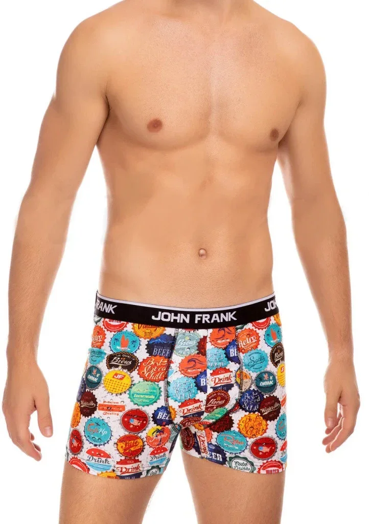 Pánské boxerky značky John Frank z vysokého podílu bavlny. Boxerky s potiskem jsou velmi příjemné na dotek a pohodlné při nošení. Jemná, širší gumička v pase má kolem logo John Frank.