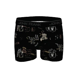 Pánské boxerky John Frank z prémiového micro modalu zaujmou originálním potiskem s motivy psů a výraznými nápisy v tmavém designu. Micro modal je mimořádně jemný, lehký a hebký materiál, který je velmi příjemný na dotek, skvěle prodyšný a efektivně odvádí vlhkost, takže zajišťuje maximální komfort po celý den. Boxerky mají pružný pas s logem značky John Frank, který dobře drží, nezařezává se a perfektně se přizpůsobí postavě. Díky elastickému složení materiálu boxerky skvěle sedí, drží tvar a neomezují v pohybu, což z nich dělá ideální volbu pro každodenní nošení.