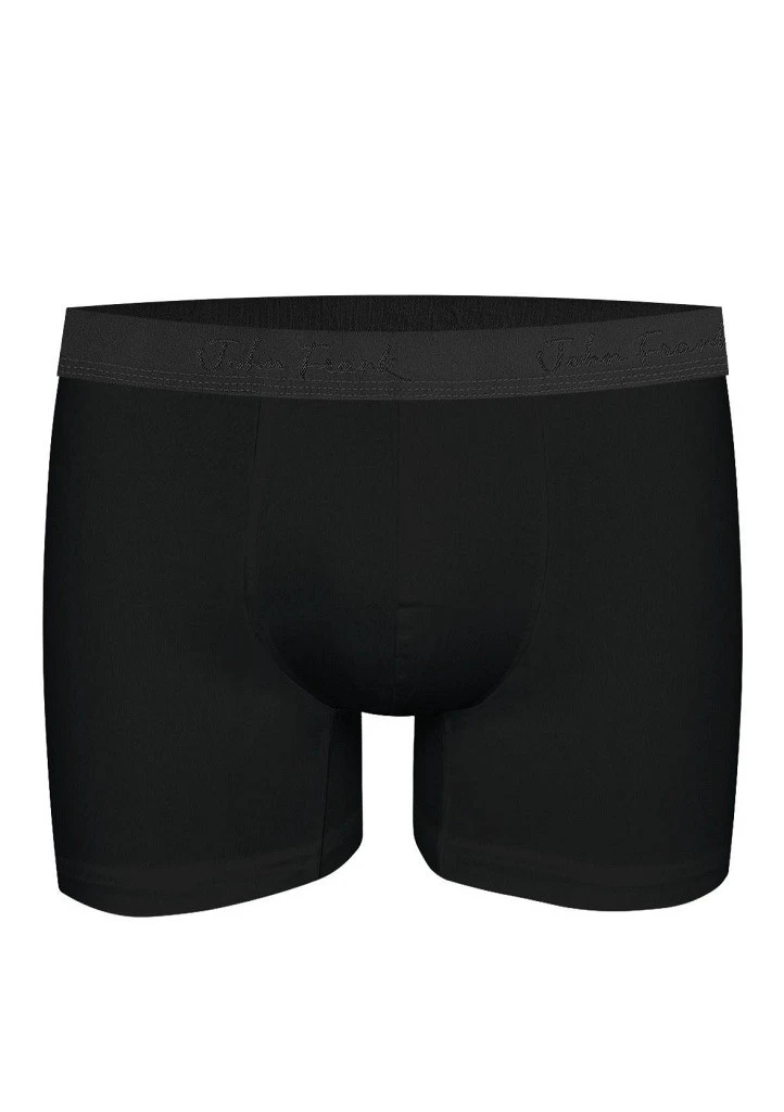 Pánské boxerky značky John Frank z vysokým podílem micromodalu. Boxerky jsou velmi příjemné na dotek a pohodlné při nošení, mají delší nohavičku. Pružná černá guma v pase má po obvodu logo John Frank.