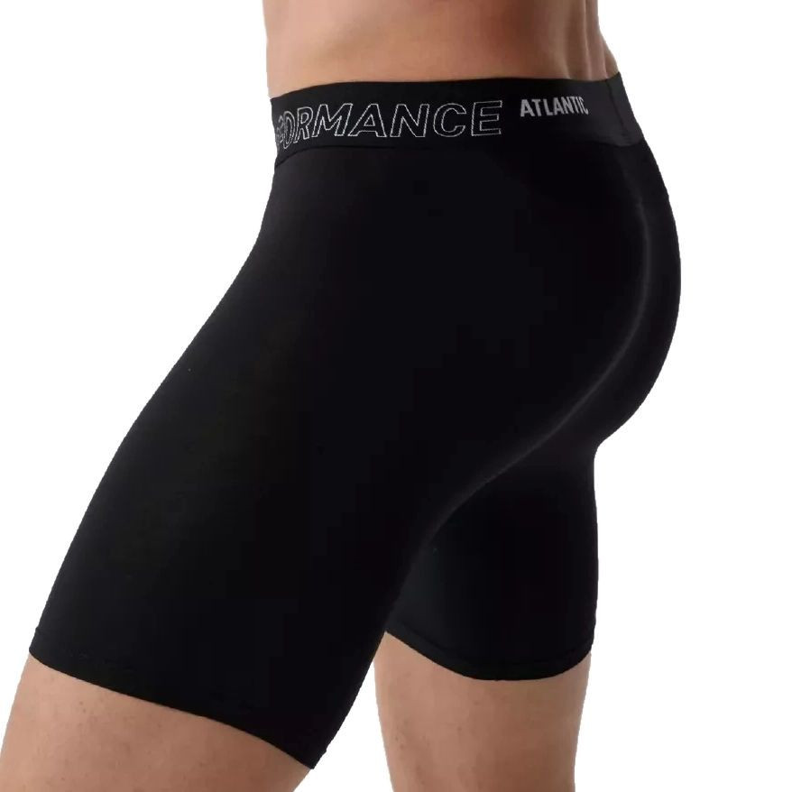Pánské boxerky 1181 Legs long black Atlantic - černá barva - z antibakteriálního a termoregulačního bambusového úpletu - odolný proti žmolkování - dlouhé nohavice - nízký pas - atletický střih - zesílený rozkrok