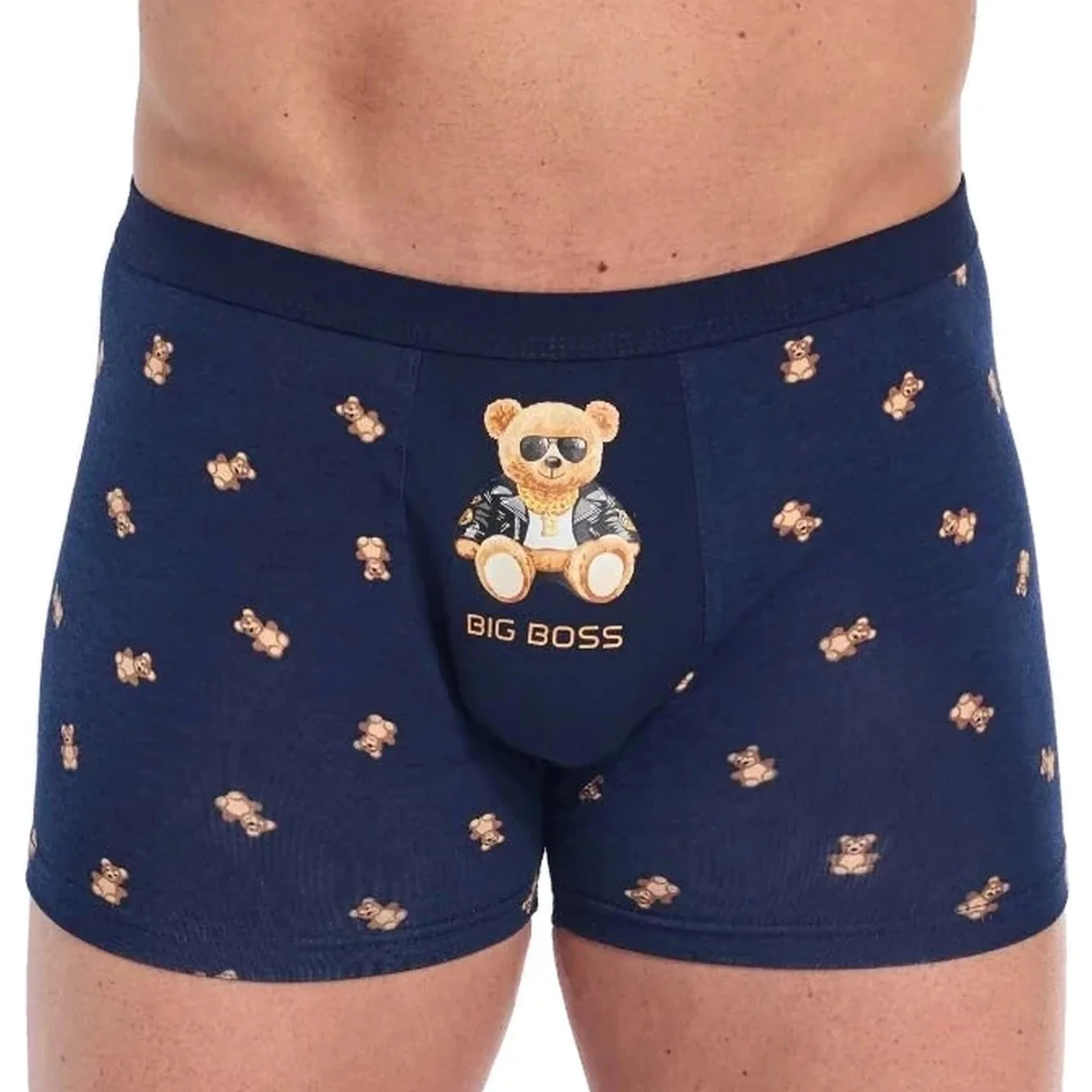 Pánské boxerky 280/245 Tattoo Boss CORNETTE - tmavě modrá barva - z vysoce jakostní bavlny - ozdobené barevným zábavným potiskem - guma s plochým švem - obšitá bavlnou - lem nohaviček netlačí do stehen, proto jsou boxerky při nošení pohodlné a komfortníMateriálové složení: 95% bavlna + 5% elastan