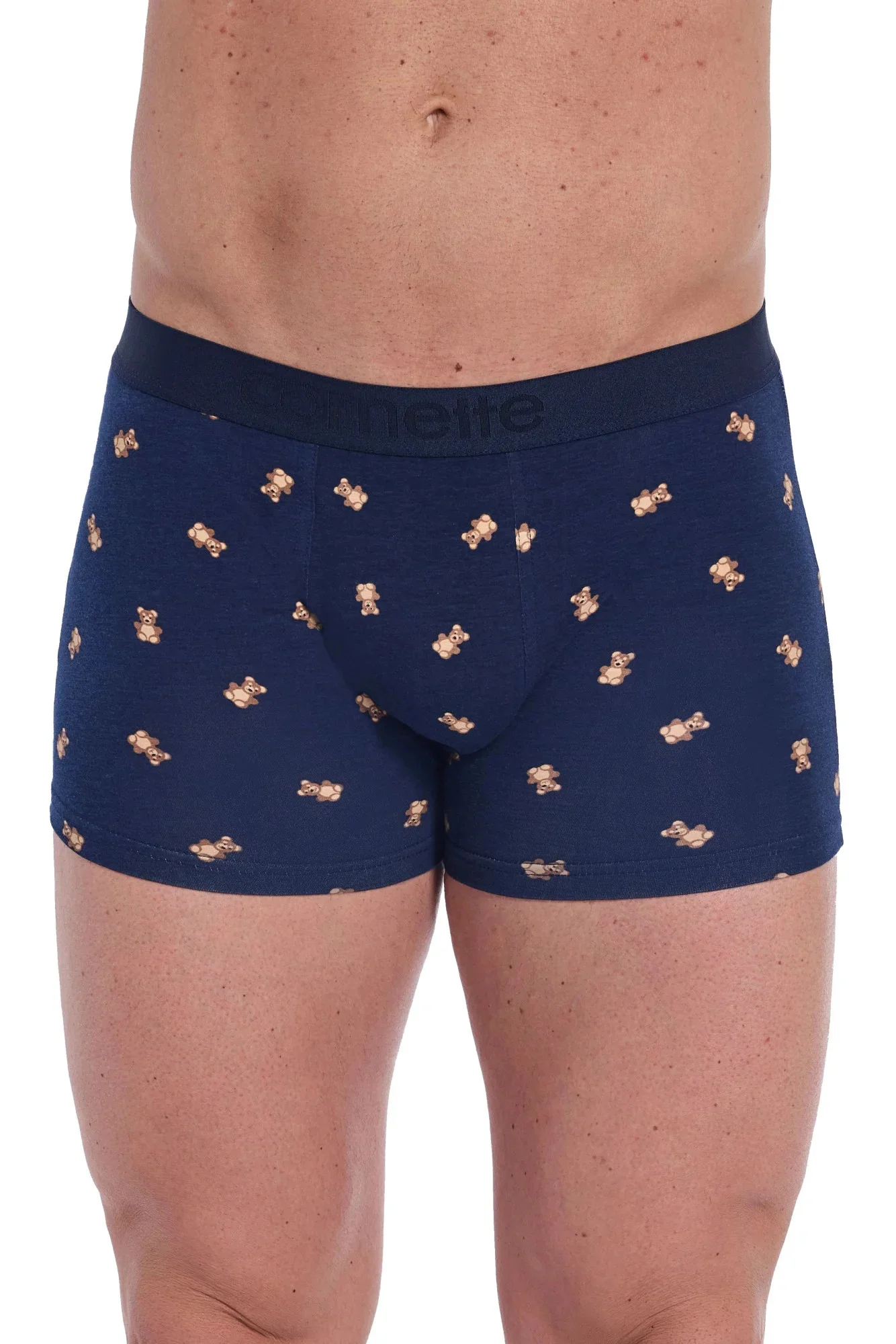 Pánské boxerky 508/156 High emotion CORNETTE - tmavě modrá barva - z vysoce jakostní bavlny - se vzorem - mají ploché švy a pohodlnou gumu v pase - lem nohaviček netlačí do stehen, proto jsou boxerky při nošení pohodlné a komfortní