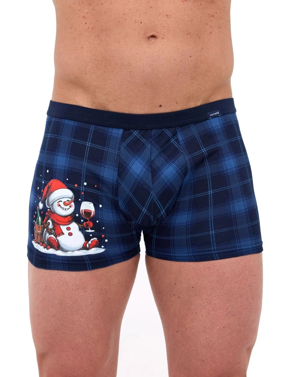 Pánské boxerky 007/80 Toast CORNETTE - tmavě modrá barva - z vysoce jakostní bavlny - ozdobené barevným potiskem - boxerky mají gumu sešitou plochým švem - guma je obšitá bavlnou - lem nohaviček netlačí do stehen, proto jsou boxerky při nošení pohodlné a komfortní - vánoční kolekce