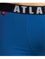 V trojbalení najdete upnuté pánské boxerky ve třech barvách: intenzivně růžové, modré a tmavě modré. Boxerky mají sportovní styl, to znamená, že mají nízký pas a nohavice univerzální délky. V pase je spodní prádlo označeno měkkou a nekompresivní vnější gumou s velkým logem ATLANTIC.
