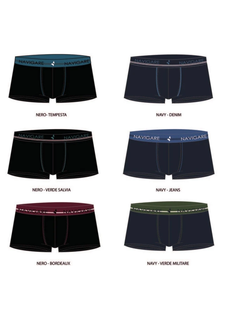 Pánské boxerky od značky Navigare. Boxerky jsou vyrobeny z velmi příjemné bavlny. Boxerky mají v pase širší gumu s nápisem značky Navigare. Boxerky jsou k dispozici ve dvou barvách, černé a tmavě modré. Guma u boxerek Vám bude vybrána náhodně.